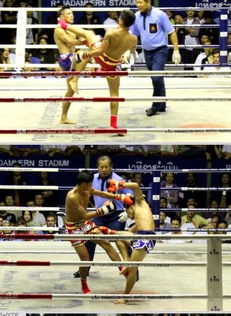 Sangmanee: A Dedkad Por Pongsawan elleni, amikor a Radja öv volt a tét. Az ütései miatt nagyon veszélyes bunyós, az első menetben nagyon megsebesített velük.